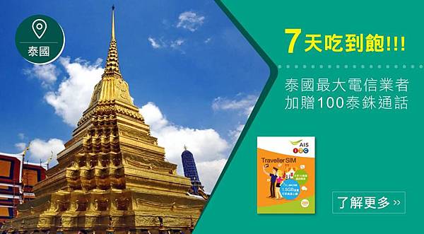 【 AIS泰國七天3G/4G無線上網+100銖通話費】