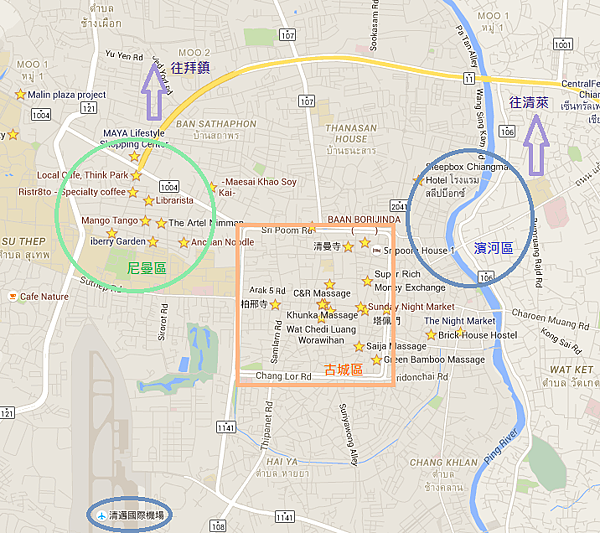 右上的那個清邁中文地圖我覺得很值得下載 (是免費的)